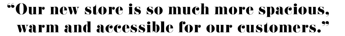 Our new store is so much more spacious, warm and accessible for our customers. Our improved staff amenities and stock room space is greatly appreciated by myself and staff members.